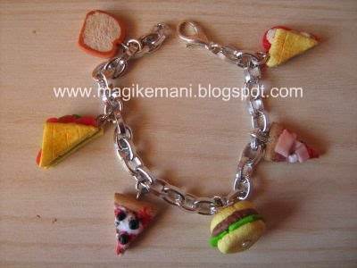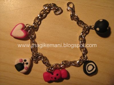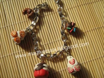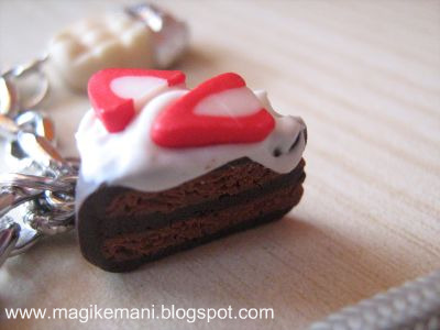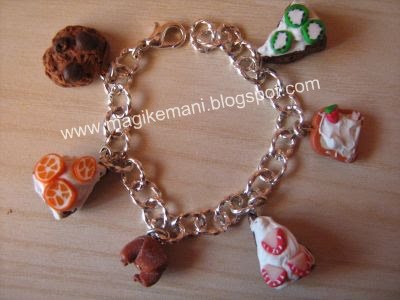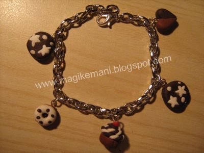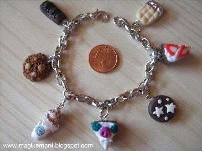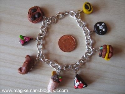 Ecco a voi un braccialetto “dolcioso” che ho chiamato Starbucks coffee: abbiamo una barretta di cioccolato bianco, una torta panna e fragole, un pan di stelle, una torta con panna e rosellina, un gelato “Starbucks coffee”, un biscotto e un duplo !!