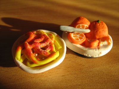 Ed ecco a voi delle miniature…il “piattino colazione”, il budino ed il piattino di pasta e arance hanno una calamita sul retro…da appendere al vostro frigorifero o dove più vi piace !!! Pizza e i piattini con le torte invece sono dei ciondoli…che si possono attaccare a braccialetti, phone strap e quant’altro !!!!