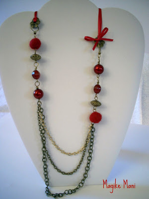 E vai!!!!!Il trabiccolo si è rimesso al suo posto e io posso impicciarmi dei vostri manufatti.Brava braqvissima…..l'ottone anticato mi piace assai, il rosso non è il mio colore preferito…però con questo insieme ci sta alla grande!!!Le soluzioni con il nastrino le ho adottate da molte tempo, così oltre a non essre fastidiose per le allergie…ognuno si aggiusta la misura come vuole……meglio di cosi???Un baciotto e ancora complimenti.Ciao Cinzia.
