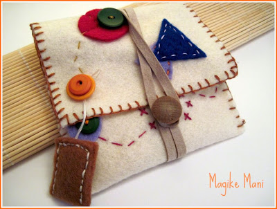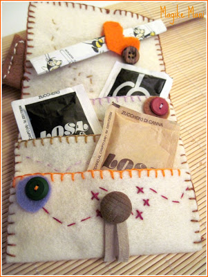 Mi piace tantissimo questo….PORTATUTTO! :)Mi piace il colore del feltro e le cuciture colorate :)Io lo userei per le piccole medicine di emergenza che ho sempre con me e che inevitabilmente si perdono nel fondo nero della mia borsa :)Ciao ciaoMopo