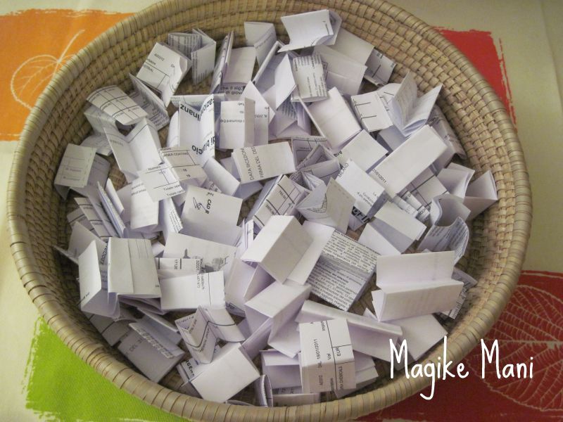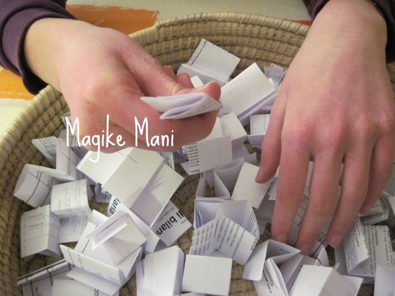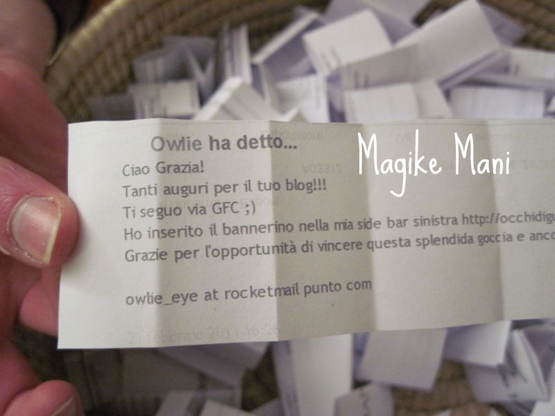 Ma veniamo a noi…ho fatto un estrazione a bigliettini…e con bigliettini stampati su carta rigorosamente riciclata…un po’ meno coreografica magari…