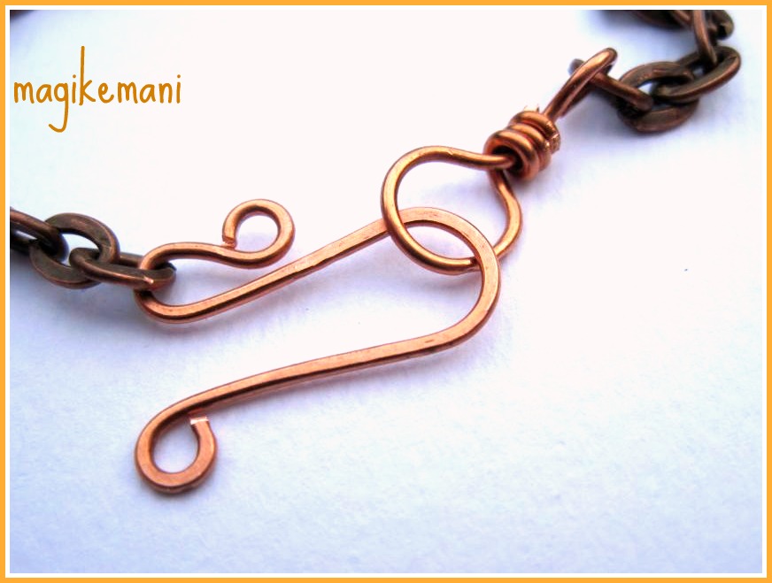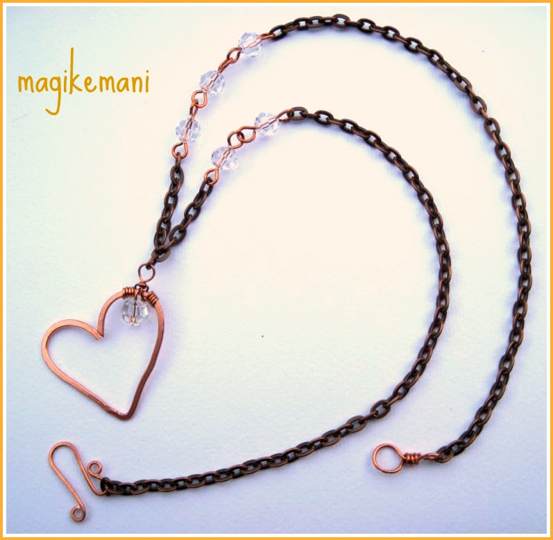 Il rame della catena è scuro, invece quello del ciondolo e della chiusura l’ho lasciato naturale, col tempo prenderà da solo una bella colorazione