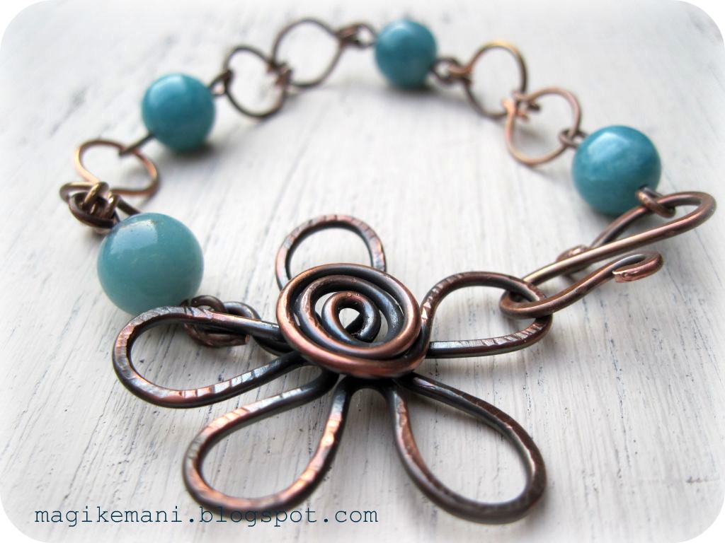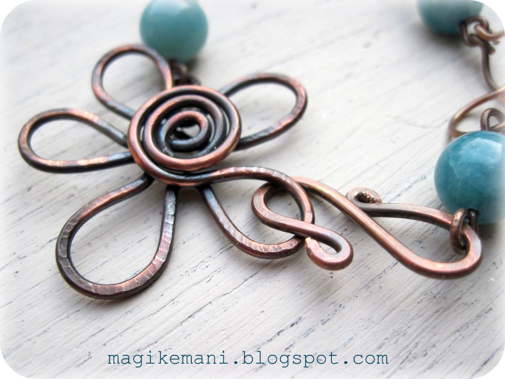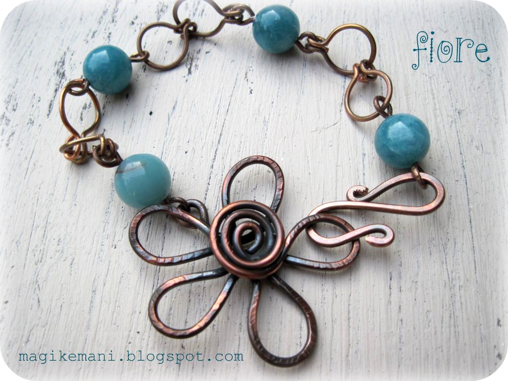 ciao Grazia…questo bracciale mi piace moltissimo… sia il fiore/chiusura che l'abbinamento del rame cotto con l'amazzonite…sono curiosa di vedere cosa creerai dopo questa fase di input ;D