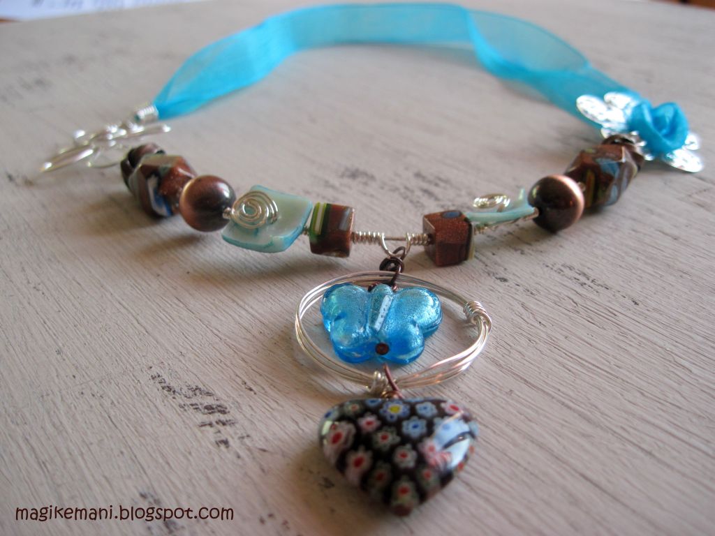 Ma che bellissima collana…..anche a me piace molto l'accostamento celeste e marrone.Immagino come sarà contenta la tua abbinata…..riceverà tutte queste belle cose!!!!!Fortunatissima…Ciao da Na'