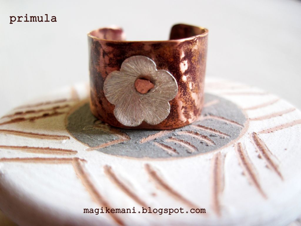 Mi piace molto la texture sulla primula, e anche l'anello a fascetta… bel lavoro!Anna