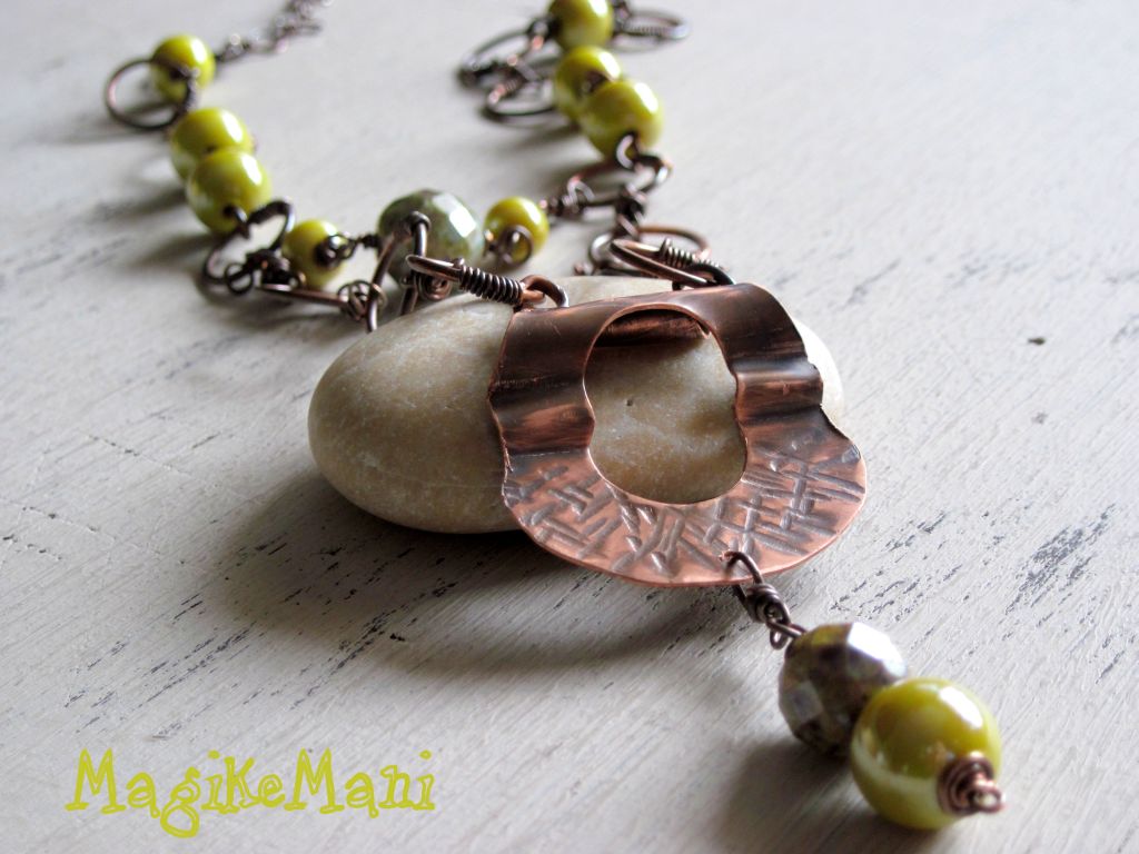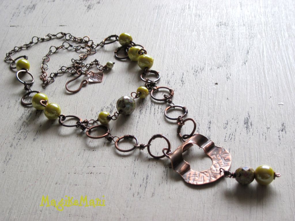 Prima di vedere la tua collana ma avrei pensato che avrei potuto farmi piacere quel verde…eppure abbinato ai tuoi anelli di rame acquisisce una grazia tutta particolare! /scusa il gioco di parole ;P)Sei proprio brava!