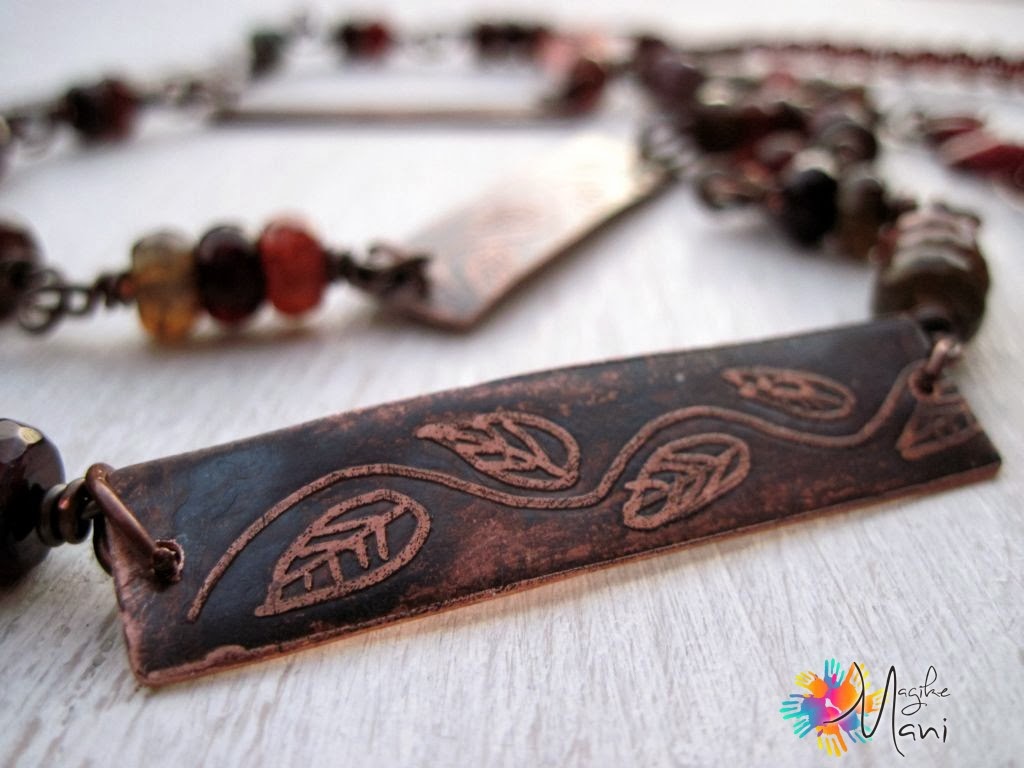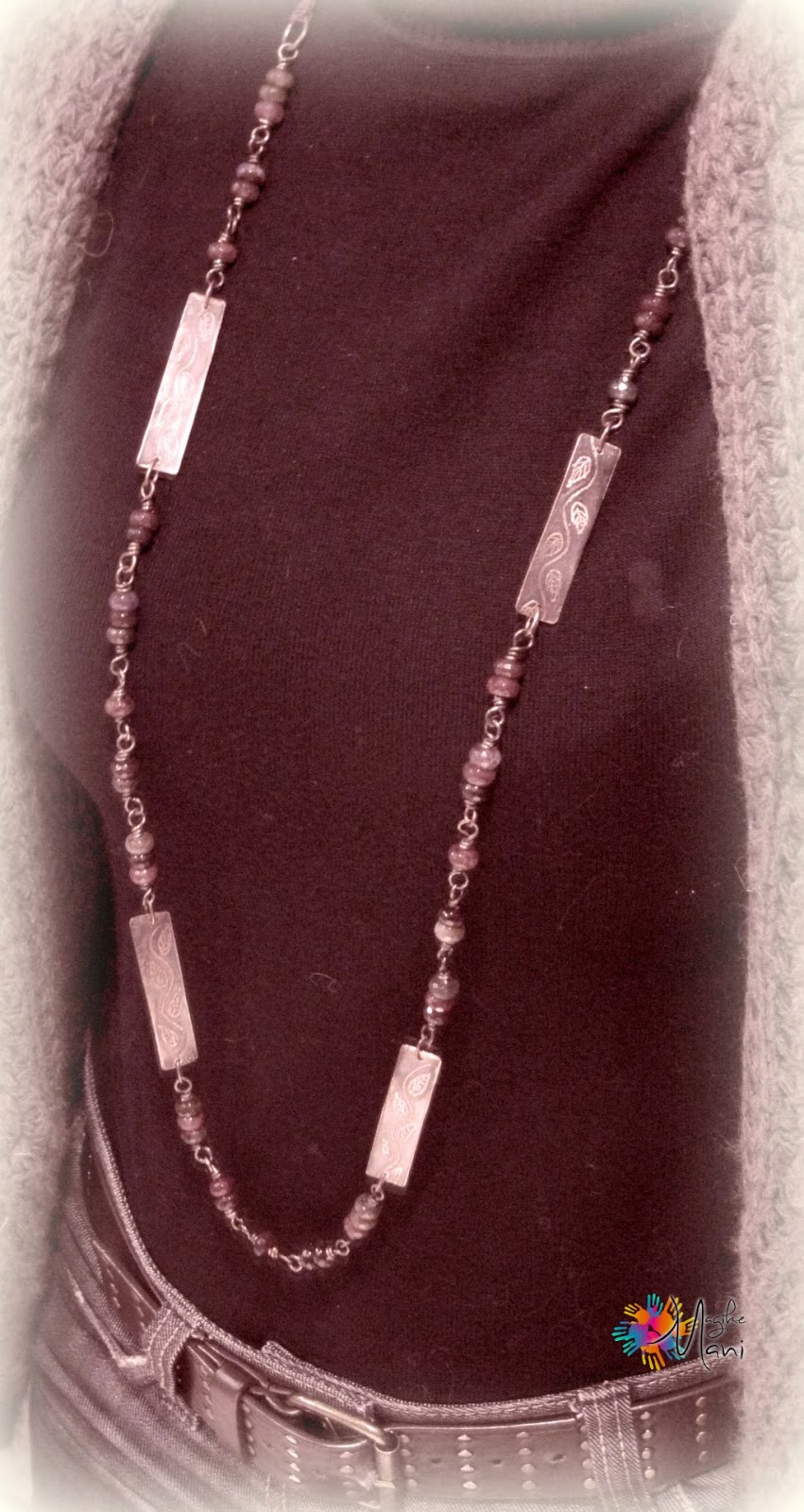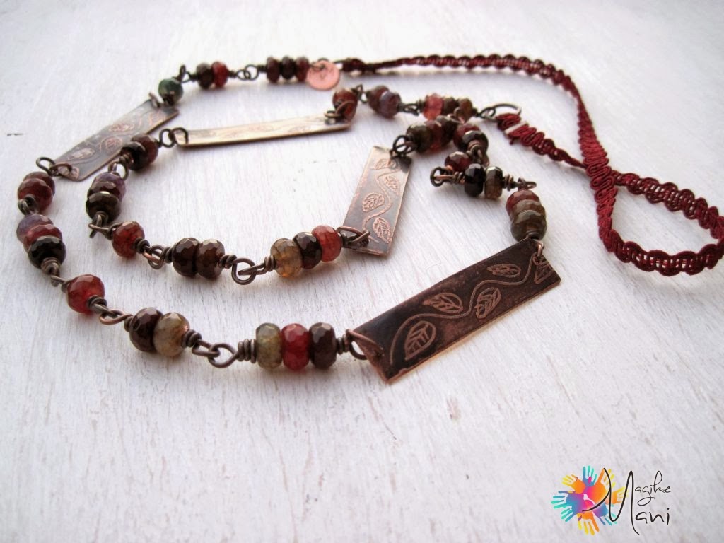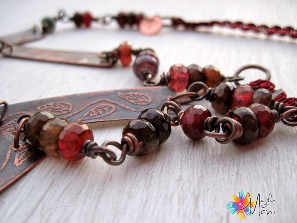 Non è il mio genere…….lo avvicino come stile all'etnico che non mi attira più di tanto per entrare nel mio ramo di creazioni, ma non per questo non apprezzo come lavoro e combinazione, direi piuttosto anche equilibrato come lavorazione in confronto ad altri di questo genere.complimenti, bella collana, anche per la lavorazione della targhetta, sei stata bravissima. Un bacio e buona giornata