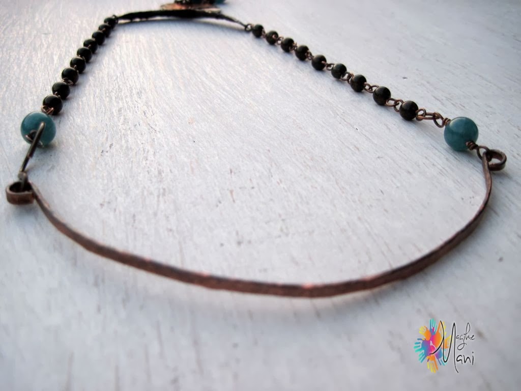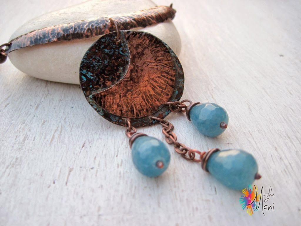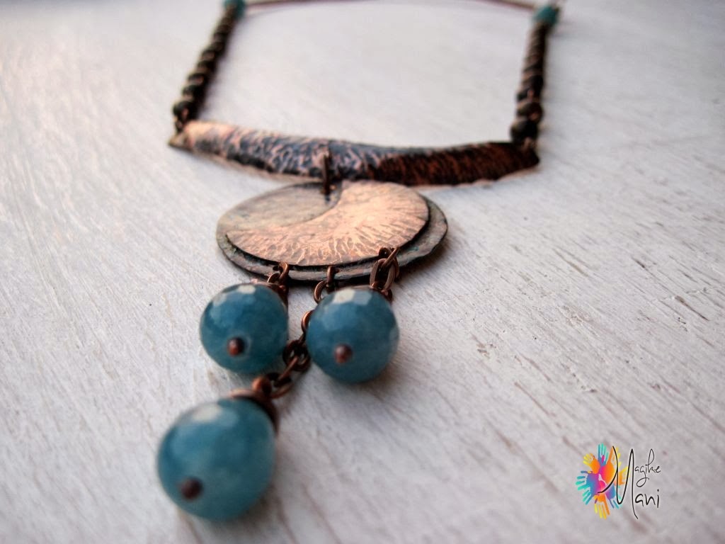 E meno male che ci sono queste persone!!!!!!Bella in tutto, angelite e rame , texure e varie, il retro sul collo.Brava Grazia……..e speriamo che smetta di buttar giù acqua.Un baciotto e buona giornata