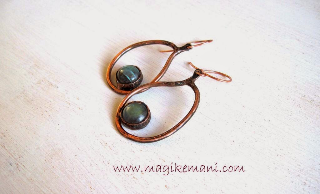 al centro due piccoli “occhi” di labradorite, dai riflessi sempre meravigliosi, incastonati in un piccolo “bezel”