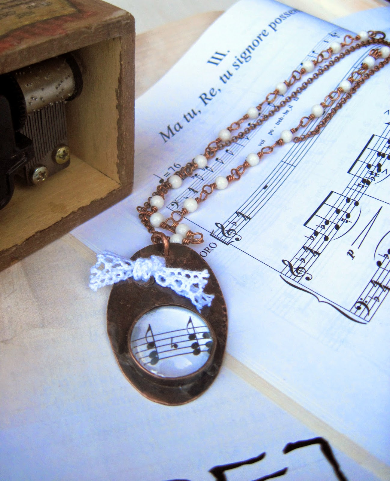 Io la trovo stupenda originale e ..musicale e io lavoro e adoro la musica…Non posso fare a meno di ammirare i blog creativi, tu hai un gusot raffinato e nello stesso tempo estremamente originale. Posso sapere quanto viene a costare questa collana cara Grazia? Mi sono iscritta con piacere e se ne avrai voglia spero tu mi vorrai ricambiare…ne sarei molo felice.. Un abbraccio di fine serata e un grazie!http://rockmusicspace.blogspot.it/