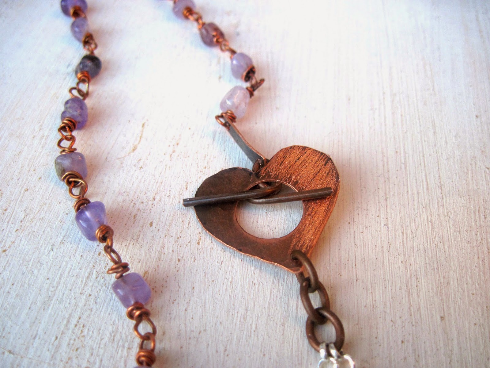 Piccole perle di ametista irregolari, rame, similoro, metallo argentato,