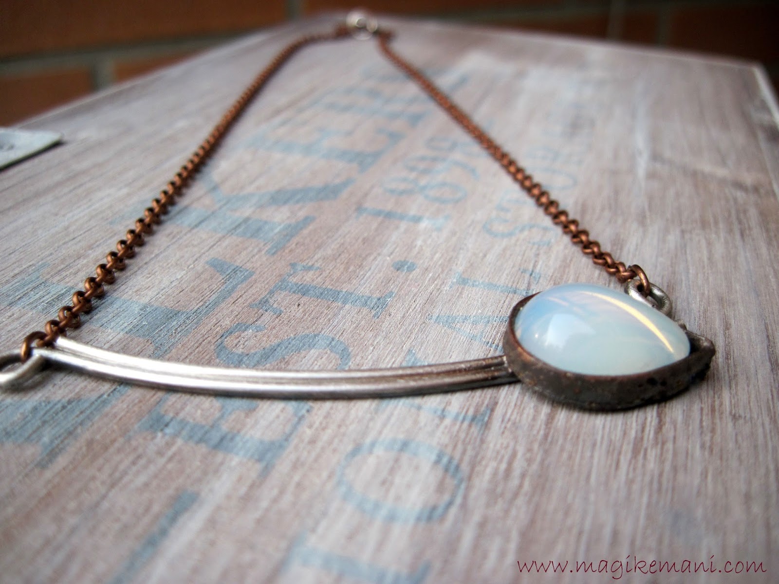 Fermo restando che il mio vero amore è il rame, anch'io tempo fa mi sono lasciata sedurre dall'argento e confesso che mi ha regalato un'emozione in più vedere il gioiello finito! Come hai detto tu è molto più morbido del rame e lavorarlo senza sciuparlo con segni inestetici è molto più difficile soprattutto nel wire wrapping, ma l'effetto finale è senza dubbio diverso…e questa collana ne è l'esempio..ha un tocco raffinato in più!Complimenti!