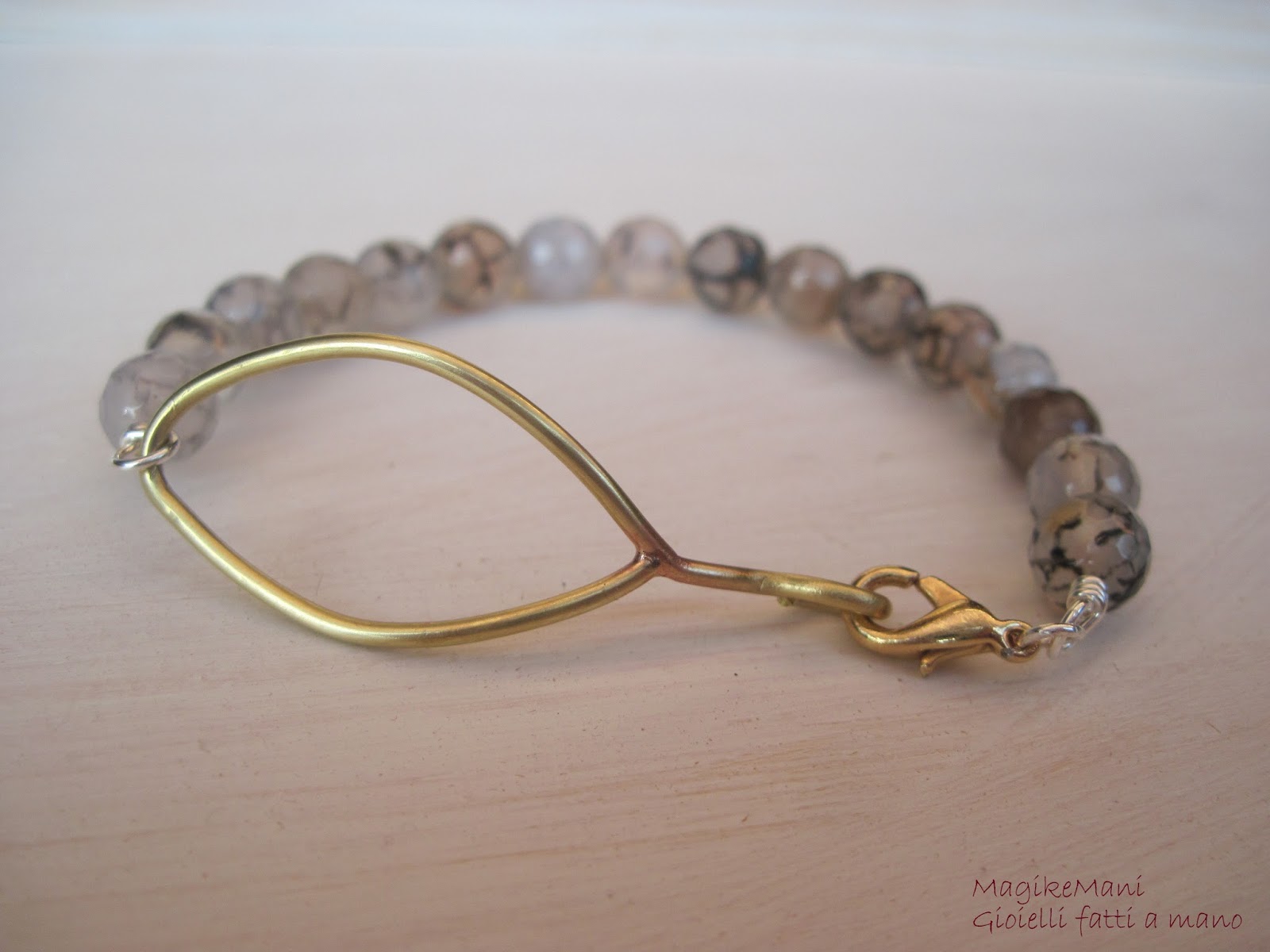 Come ho già spiegato spesso mi spiace usare chiusure commerciali, ma le chiusure ad amo sui bracciali si aprono, io stessa ne ho persi ed ho dovuto rifare bracciali a clienti che ne hanno persi a loro volta. Quasi sempre sia via web che \”dal vivo\” i clienti mi chiedevano di cambiare le chiusure ad amo o artigianali con quelle a moschettone. A volte bisogna essere realisti 😉