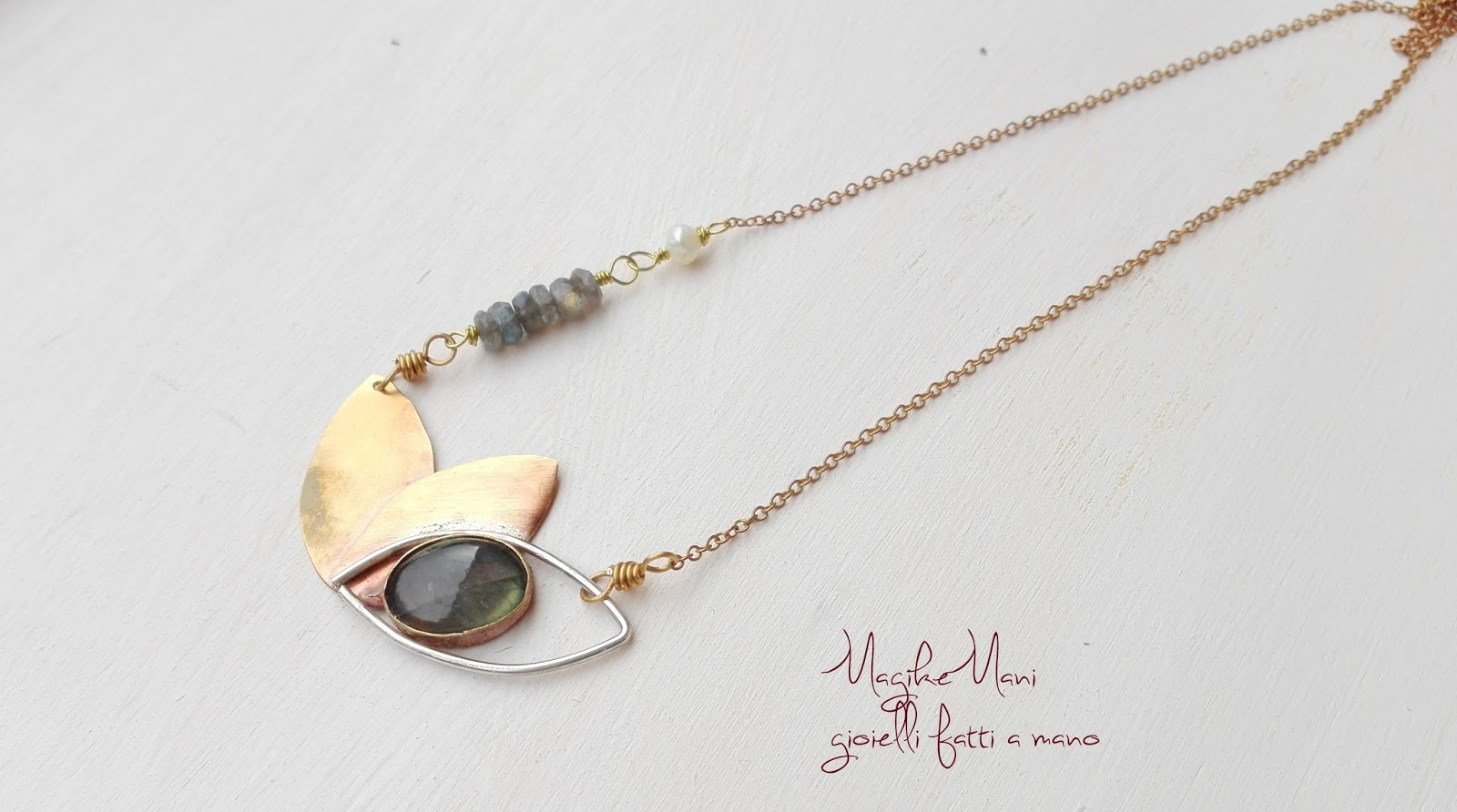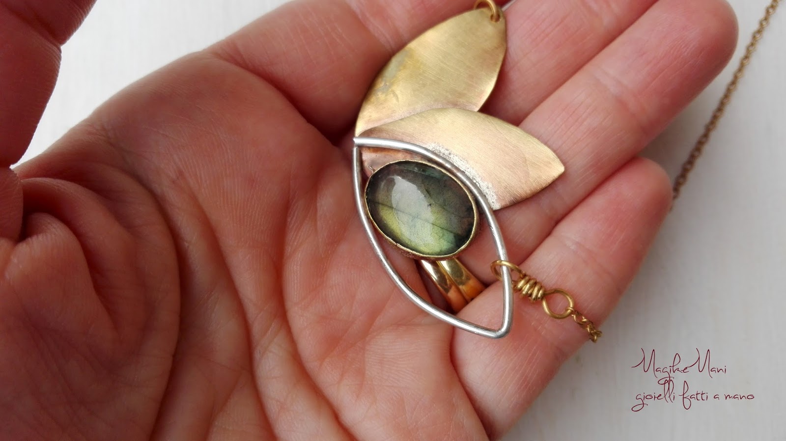 Si perchè spesso siete voi a scegliere e indirizzare le mie scelte creative, come la collana con il fiore di loto stilizzato, è nata un po’ per caso ma è stata subito apprezzata visto che ho replicato diverse volte, stasera nella versione “similoro e labradorite”