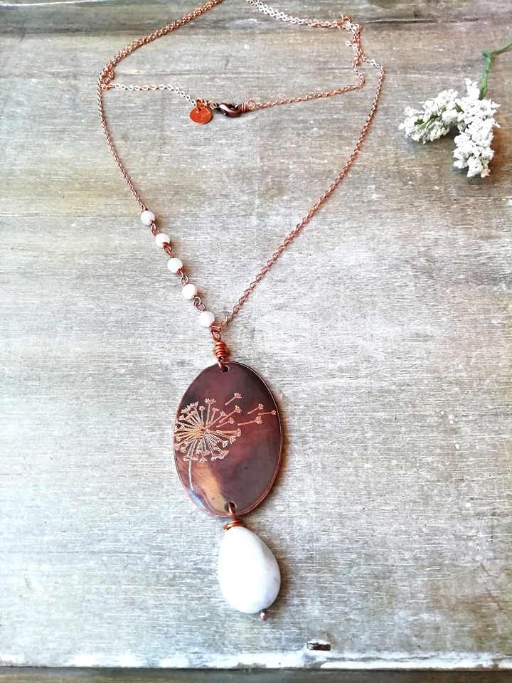 La collana è in rame, le pietre sono labradorite bianca e agata